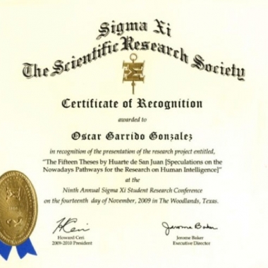 Óscar Garrido González. Estudiante “non-degree” de filosofía y lenguas modernas, participante en 2009 en la Conferencia Anual de Investigación para Estudiantes de la Sociedad Científica Sigma Xi, voluntario en el Programa de Apoyo a Inmigrantes por la Cruz Roja en España.